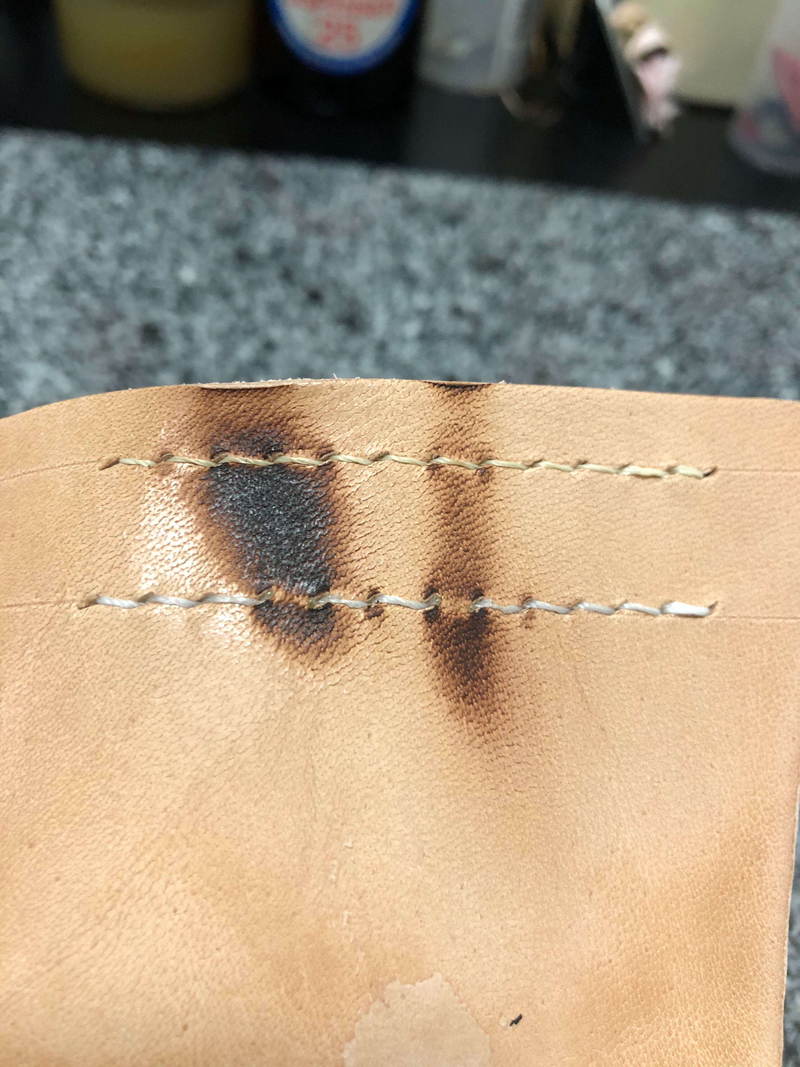 革の切断面は全て磨いた後に焼き締めてあります、こうする事で強度が増しハードなアウトドア環境でもガンガン使えますヽ(・∀・)
